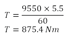 ดังนั้นแรงบิดที่เพลาขาออกเท่ากับประมาณ 875 Nm
