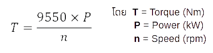สูตรพื้นฐานสำหรับคำนวณแรงบิดที่เพลาขาออก คือ